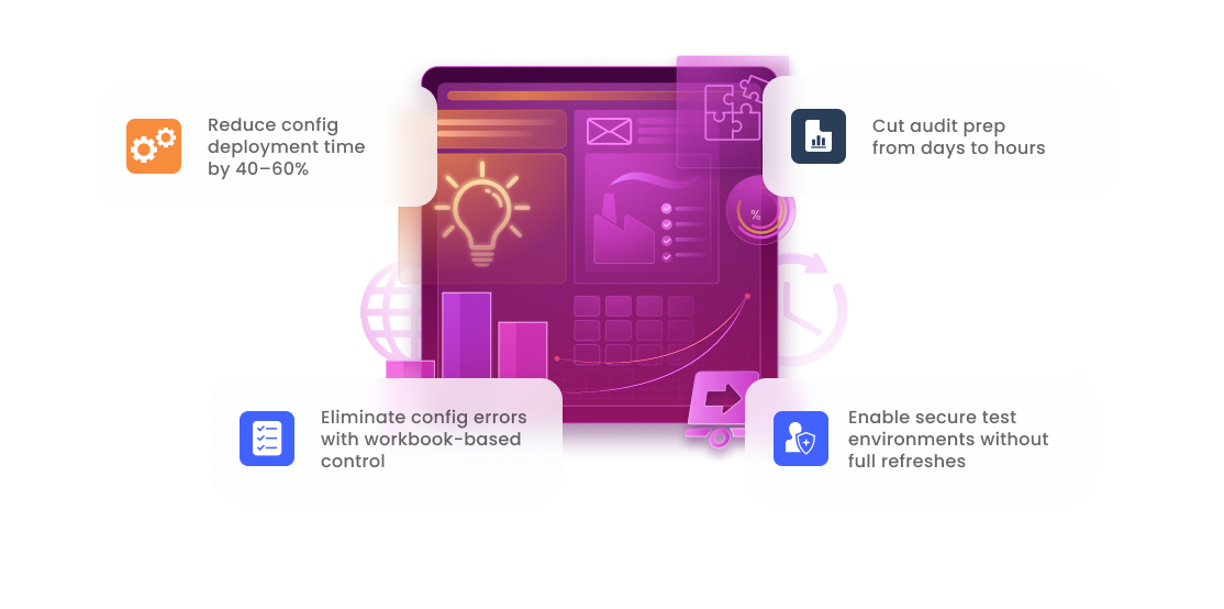ConfigBot provides a suite of tools that integrate directly into your Workday landscape—helping you simplify operations, accelerate delivery, and ensure governance.